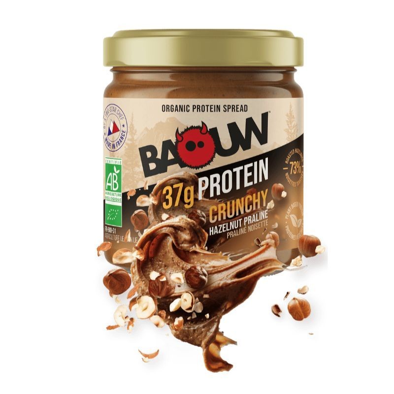 Ah, la pâte à tartiner protéinée version Crunchy Praliné - Noisette ! Avec sa touche croustillante irrésistible et sa douceur pralinée, cette nouvelle recette promet de raviver tes papilles avec encore plus de texture. Toujours fidèle à l’esprit Baouw, elle allie gourmandise et bienfaits nutritionnels dans une alternative saine aux autres pâtes à tartiner. Composée de 73% de noisettes et sans huile de palme, sans lait, elle utilise du sucre de canne complet, sain pour ton corps et ta santé naturellement.